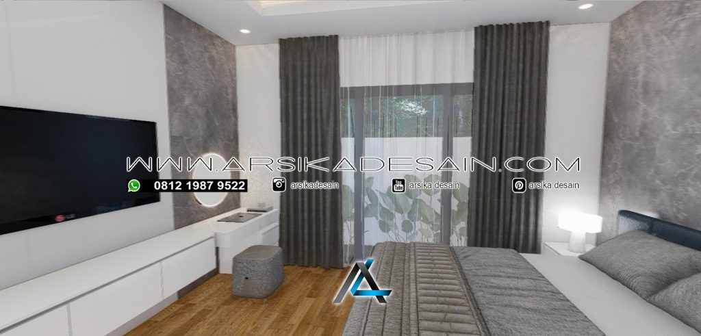 Kita memasuki ruang tidur utama berukuran 4,5 x 4 meter, Ruang tidur ini punya vibes calm, cozy, dan modern yang bikin betah maksimal. Dominasi warna abu-abu dipadu lantai kayu kasih kesan hangat tapi tetap clean, sementara pencahayaan lembut bikin suasana makin rileks. Furniturnya simpel dan rapi, ditambah meja rias minimalis dan bukaan jendela besar yang masukin cahaya alami—pas banget buat istirahat, me-time, dan recharge energi tanpa drama, pastinya terdapat kamar mandi dalam berukuran 2,3 x 2,5 meter, Kamar mandi ini tampil kekinian dengan desain modern dan fasilitas super lengkap, mulai dari bathtub buat rileks, wastafel minimalis, sampai pencahayaan yang nyaman. Semuanya ditata rapi dan fungsional, bikin aktivitas mandi terasa lebih santai, praktis, dan berasa kayak spa di rumah sendiri