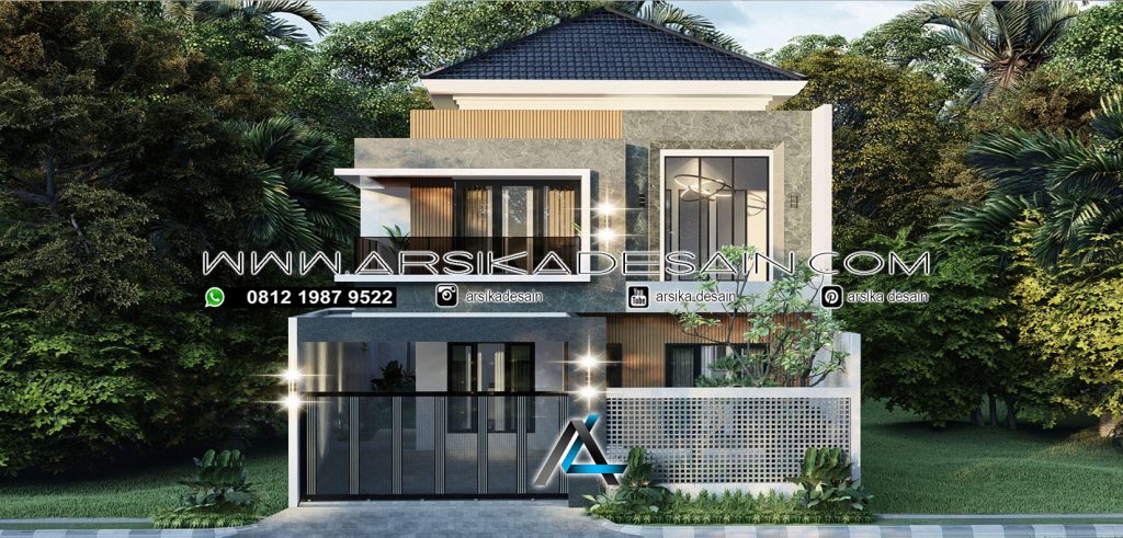 Desain rumah ini vibes-nya modern tropis kontemporer yang kelihatan clean tapi tetap hangat. Bentuknya tegas dan geometris, main layering di tiap lantai jadi fasadnya nggak flat. Bukaan besar dan balkon di lantai atas bikin rumah terasa lega, terang, dan pastinya sirkulasi udara jalan terus—cocok banget buat iklim tropis biar nggak sumuk.