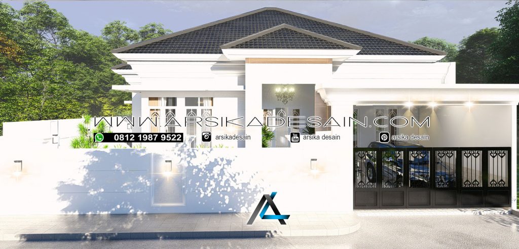 Desain rumah klasik modern 1 lantai ini memiliki kesan elegan namun tetap kekinian. Dari luar, fasadnya langsung bikin jatuh cinta — permainan bentuk simetris khas klasik dipadu dengan sentuhan minimalis modern yang bersih dan rapi. Pilar-pilar tegak berdiri gagah namun tidak terlalu ramai, membuat tampilannya megah tanpa terkesan “tua”. Cocok bangt buat kamu yang pengen rumah berkarakter tapi tetap relevan sama gaya hidup masa kini.